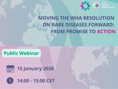15 gennaio 2026 onlineMoving the WHA Resolution on Rare Diseases Forward: From Promise to ActionIl webinar è incentrato dello stato dell'attuazione della Risoluzione WHA per accelerare lo sviluppo del Global Action Plan on Rare Diseases |