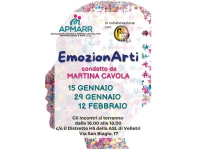 15 gennaio 2026 Velletri (Roma)EmozionArtiAl via gli incontri di gruppo dedicati ai pazienti con patologie reumatologiche: il 15 gennaio, il 29 gennaio e il 12 febbraio 2026 |