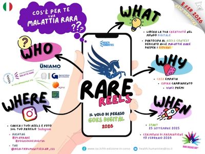 15 gennaio 2026 “Pegaso Goes Digital!”, per l’invio dei reel sulle malattie rare c’è tempo fino all’8 febbraioC’è più tempo per partecipare a “Rare Reels: Pegaso goes digital!”, il Reels Contest dedicato alle malattie rare che invita giovani, Associazioni e comunità a raccontarle attraverso il linguaggio creativo e immediato dei video Reel |