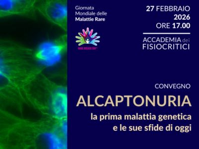 27 febbraio 2026 Accademia dei Fisiocritici di SienaALCAPTONURIA, la prima malattia genetica e le sue sfide di oggiSi parlerà della malattia da tutti i punti di vista: storia, clinica, diagnosi, terapia, assistenza, ricerca, genetica, progetti, prospettive e casi studio |