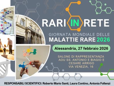 27 febbraio 2026 Salone di rappresentanza, ospedale SS. Antonio e Biagio e Cesare Arrigo, via Venezia 16 (Alessandria)Rari in ReteLa Rete delle Malattie Rare della Regione Piemonte e le malattie rare delle AOU di Alessandria sono protagoniste del convegno dedicato al Rare Disease Day ad Alessandria |