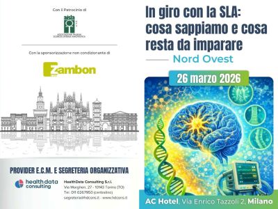 26 marzo 2026 AC Hotel MilanoIn giro con la SLA: cosa sappiamo e cosa resta da imparareL'incontro mira ad aggiornare i partecipanti in tema di SLA per cercare di ridurre il ritardo diagnostico e condividere percorsi clinico‑assistenziali ottimali |