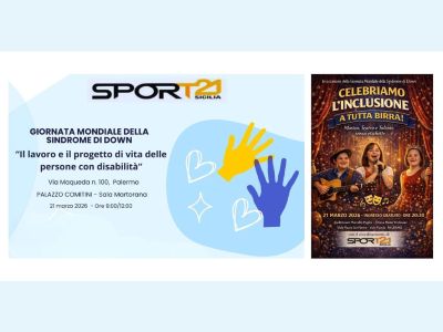 21 marzo 2026 PalermoIl lavoro e il progetto di vita delle persone con disabilitàIn occasione della Giornata mondiale delle persone con sindrome di Down, Palermo ospita un convegno dedicato al progetto di vita e all'inserimento lavorativo, e, in serata, uno spettacolo teatrale |