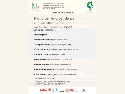 26 marzo 2026 Sala Stampa della Camera dei Deputati - RomaEvento conclusivo del progetto "Pronti per l’Indipendenza"L’incontro rappresenta il culmine di un percorso dedicato all’autonomia delle persone con disabilità, offrendo l’opportunità di presentare i risultati raggiunti e di dialogare sulle prospettive future |