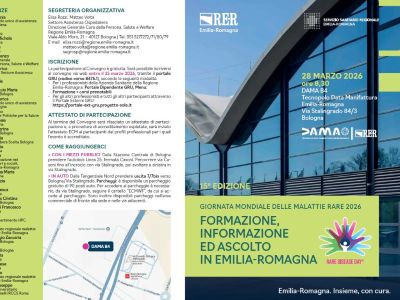 28 marzo 2026 sede DAMA – Tecnopolo Data Manifattura Emilia-Romagna, Via Stalingrado 84/3, BolognaMalattie rare: formazione, informazione e ascolto in Emilia-RomagnaScopo dell’evento è diffondere informazioni ed esperienze sulle malattie rare per favorirne il rapido sospetto, l’indirizzo ai centri specialistici di riferimento, la riduzione del ritardo diagnostico |