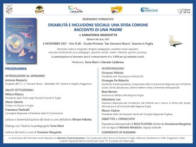 6 novembre 2021 Disabilità e inclusione sociale: una sfida comune. Racconto di una madre