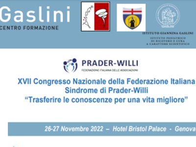 26 novembre 2022 - 27 novembre 2022 XVII Congresso Nazionale della Federazione Italiana Sindrome di Prader-Willi “Trasferire le conoscenze per una vita migliore”