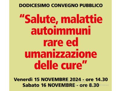 15 novembre 2024 - 16 novembre 2024 ForlìSalute, malattie autoimmuni rare ed umanizzazione delle cureL'Associazione AMAR organizza questo incontro per far luce a 360° sulle patologie autoimmuni rare |
