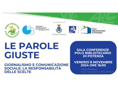 8 novembre 2024 Potenza“Le parole giuste. Giornalismo e comunicazione sociale: la responsabilità delle scelte”Quali sono, insomma, le parole giuste per raccontare malattie, disabilità, fragilità? Le risposte in un libro promosso dalla Fondazione Alessandra Bisceglia |