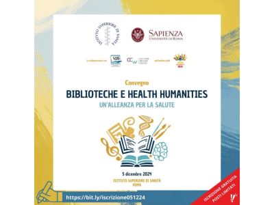 5 dicembre 2024 Roma (Istituto Superiore di Sanità)Biblioteche e Health Humanities: un’alleanza per la saluteIl convegno vuole essere un luogo di incontro e di confronto per promuovere le Health Humanities nell'intera rete del sistema bibliotecario, coinvolgendo attivamente le biblioteche italiane per implementarne le funzioni di promotrici di conoscenza ed equità nel contesto sociale |