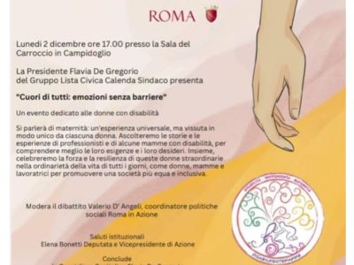 2 dicembre 2024 RomaCuori di tutti: emozioni senza barriereSaranno raccontate le storie e le esperienze di maternità di alcune mamme con disabilità, per comprendere meglio le loro esigenze e i loro desideri e per promuovere una società più equa e inclusiva |