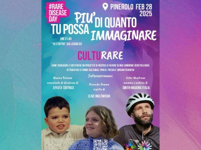 28 febbraio 2025 Pinerolo (Torino)CultuRARESerata di divulgazione e conoscenza della rara sindrome di Smith Magenis attraverso 3 forme culturali: prosa, poesia e cinematografia |