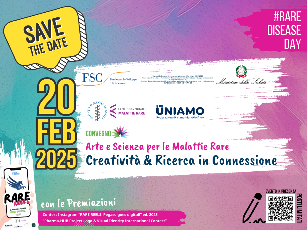 19 febbraio 2025 Roma (Sala Rita Levi Montalcini, Piazza San Lorenzo in Lucina 4)La Ricerca sulle Malattie Rare in Italia – Opportunità e SfideL’incontro riunisce istituzioni, esperti e rappresentanti del mondo scientifico e associativo per affrontare temi cruciali come la ricerca, la sperimentazione clinica e l’accesso alle terapie |