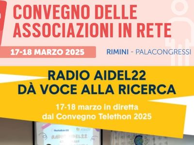 17 marzo 2025 - 18 marzo 2025 RiminiVIII Convegno delle Associazioni in rete di Fondazione TelethonFondazione Telethon organizza da anni un importante momento di approfondimento e dialogo tra le Associazioni di pazienti e la comunità scientifica |