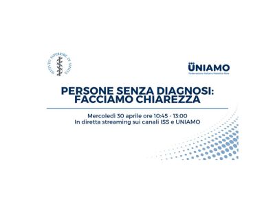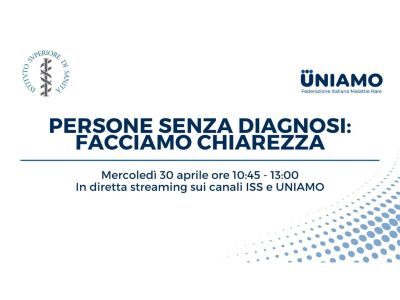 30 aprile 2025 onlinePersone senza diagnosi: facciamo chiarezzaCirca il 60% dei pazienti con malattie rare rimane senza diagnosi anche dopo un test genomico completo. UNIAMO e ISS celebrano la Giornata Mondiale delle Malattie Senza Diagnosi con questo webinar |