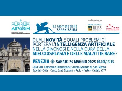 24 maggio 2025 Venezia – Sala San Domenica Formazione Scuola Grande di San MarcoQuali novità e quali problemi ci porterà l’intelligenza artificiale nella diagnosi e nella cura della mielodisplasia e delle malattie rare?L’utilizzo dell’intelligenza artificiale presenta un enorme potenziale per migliorare l’assistenza sanitaria e la medicina, ma come tutte le tecnologie, può essere anche usata in modo improprio e causare danni |