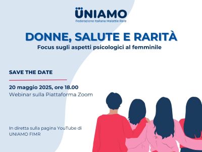 20 maggio 2025 onlineDonne, Salute e Rarità. Focus sugli aspetti psicologici al femminileNuovo appuntamento il 20 maggio con "Donne, Salute e Rarità", dedicato alla salute mentale |