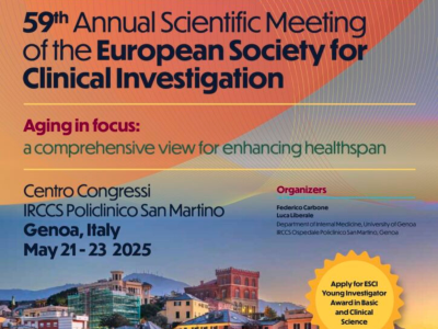 21 maggio 2025 - 23 maggio 2025 Genova, Policlinico San Martino59° Congresso Annuale della European Society for Clinical Investigation - Alla scoperta di nuove frontiere per il mantenimento della salute umanaPresente anche A.Ma.R.A.M. Aps interessata alla problematica delle malattie autoinfiammatorie e alla Febbre mediterranea familiare |