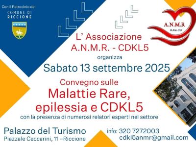 13 settembre 2025 Palazzo del Turismo - Piazzale Ceccarini, 11 47838 RiccioneMalattie rare, epilessia e CDKL5Un'importante occasione per unire scienza, ricerca e comunità, favorendo la condivisione di conoscenze e il dialogo tra ricercatori, medici e pazienti |