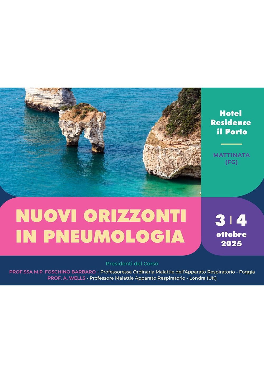 3 ottobre 2025 - 4 ottobre 2025 Foggia - Hotel Residence Il Porto di MattinataNuovi Orizzonti in PneumologiaDue giornate di alta formazione e sensibilizzazione, dedicate a medici chirurghi di area interdisciplinare. Previsti 11 crediti ECM |