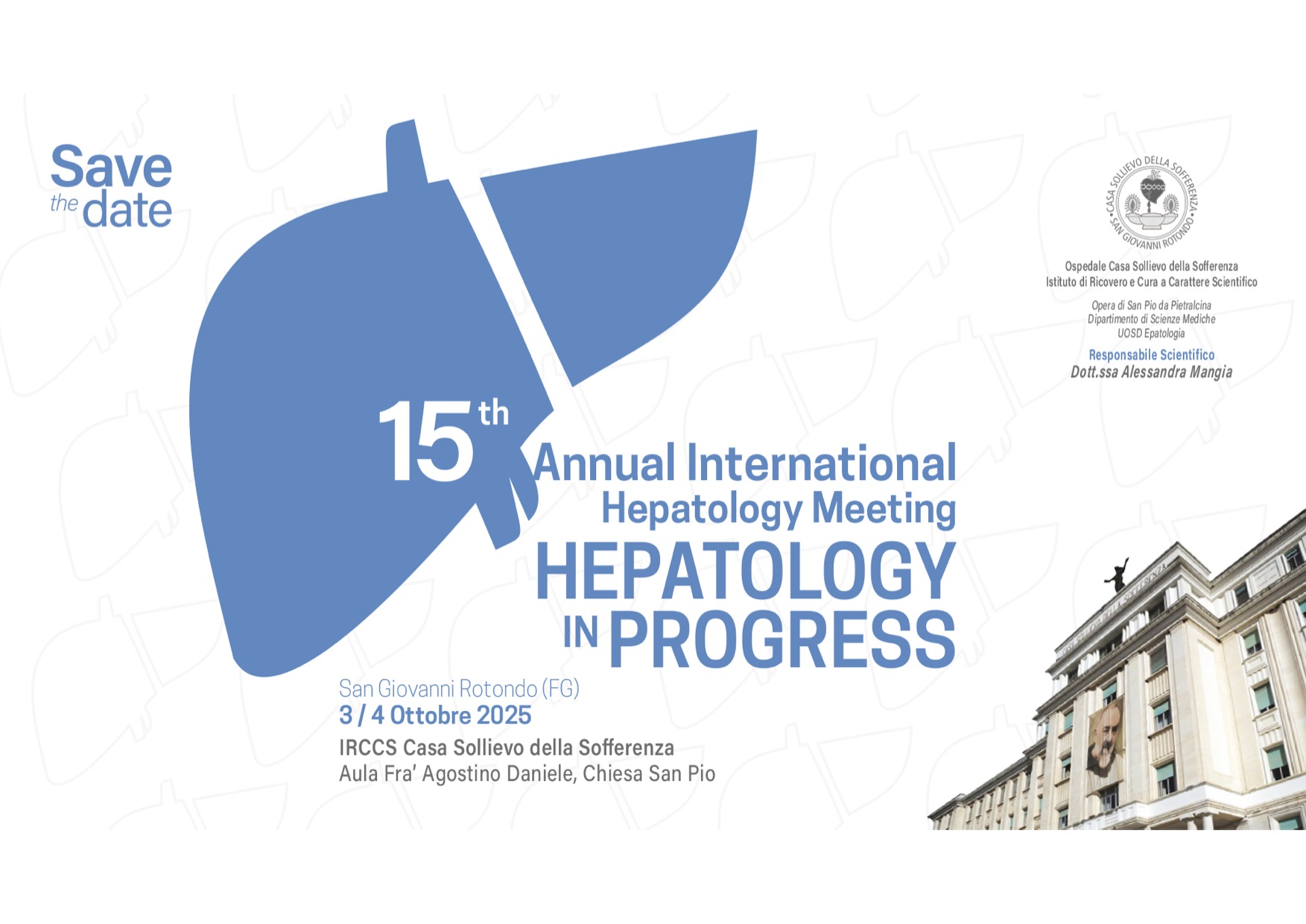 3 ottobre 2025 - 4 ottobre 2025 San Giovanni Rotondo (FG15° Congresso Annuale Hepatology in ProgressLa tavola rotonda inaugurale porrà particolare attenzione all’impatto che la ricerca scientifica ha avuto e continua ad avere nel nostro Paese, con un focus sul percorso che porta i farmaci dalla sperimentazione alla reale disponibilità per i pazienti |