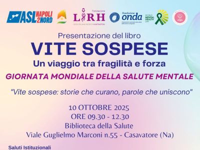 10 ottobre 2025 NapoliVite sospese - un viaggio tra fragilità e forzaIn occasione della Giornata della salute mentale, viene presentato il libro "Vite sospese", la storia di un uomo che ha vissuto in prima persona il dolore e le sfide legate alla malattia di Huntington |